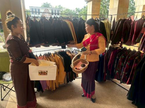 นางทรัพย์สิน โพธิ์ขาว พัฒนาการจังหวัดศรีสะเกษ มอบหมายให้นางสาวธนพร ขจิตเวทย์ ผู้อำนวยการกลุ่มงานสารสนเทศการพัฒนาชุมชน นำนักวิชาการพัฒนาชุมชนจังหวัด ร่วม“ศรีสะเกษพร้อมใจ นุ่งผ้าไทยใส่บาตร ทำความดี วิถีพอเพียง” ตามโครงการรณรงค์แต่งกายด้วยผ้าไทยและผ้าพื้นเมือง โดยมีนางสาวชนมณัฐ รอดบุญธรรม รองผู้ว่าราชการจังหวัดศรีสะเกษ เป็นประธานมี หัวหน้าส่วนราชการระดับจังหวัด ภาคเอกชน และประชาชน ร่วมกิจกรรม เพื่อส่งเสริมให้ส่วนราชการ ภาครัฐ ภาคเอกชน และประชาชนทั่วไป ร่วมสืบสานอนุรักษ์ศิลป์ผ้าถิ่นไทย ดำรงไว้ในแผ่นดิน และส่งเสริมการท่องเที่ยว รวมทั้งพัฒนาคุณภาพชีวิตของประชาชน นอกจากนี้ยังมีการเดินแบบชุดผ้าไทยใส่ให้สนุกภายในงาน สร้างการรับรู้การอนุรักษ์ศิลป์ผ้าถิ่นไทย ดำรงไว้ในแผ่นดิน ส่งเสริมเศรษฐกิจฐานราก สร้างผู้ผลิต ผู้ประกอบการ OTOP ให้เข้มแข็ง สมดั่งเป็น “ศรีสะเกษธานีผ้าศรี…แส่ว” สร้างรายได้ให้ผู้ประกอบการ OTOP และพี่น้องประชาน โดยมียอดจำหน่ายสินค้า OTOP 9 กันยายน 2568 จำนวน 29,400 บาท ยอดจำหน่ายสะสมตั้งแต่มกราคม 2563 จนถึงปัจจุบัน จำนวน 15,412,140 บาท