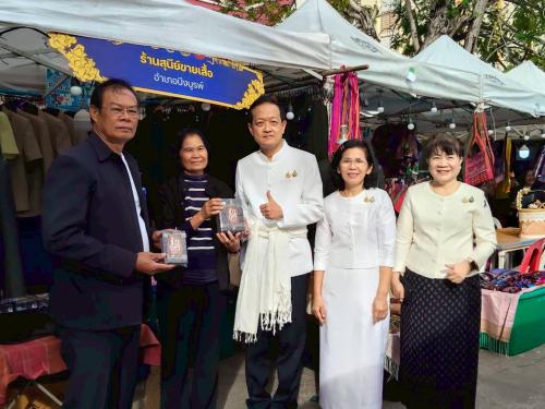 ในการนี้ นางทรัพย์สิน โพธิ์ขาว พัฒนาการจังหวัดศรีสะเกษ ร่วมเยี่ยมชมและให้กำลังใจผู้ผลิต ผู้ประกอบการ OTOP และเครือข่ายโคก หนอง นา พช. ที่นำสินค้า OTOP และสินค้าวัฒนธรรมมาร่วมจัดแสดงและจำหน่ายในครั้งนี้ด้วย