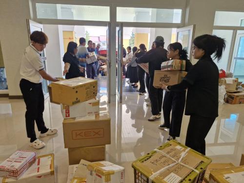 พช.ศรีสะเกษ ระดมเจ้าหน้าที่กระจายสิ่งของ ส่งต่อความช่วยเหลือให้ทหาร และเจ้าหน้าที่แนวหน้า รวมถึงผู้ประสบภัยเหตุปะทะชายแดนไทย - กัมพูชา จังหวัดศรีสะเกษ ต่อเนื่องเป็นวันที่ 10