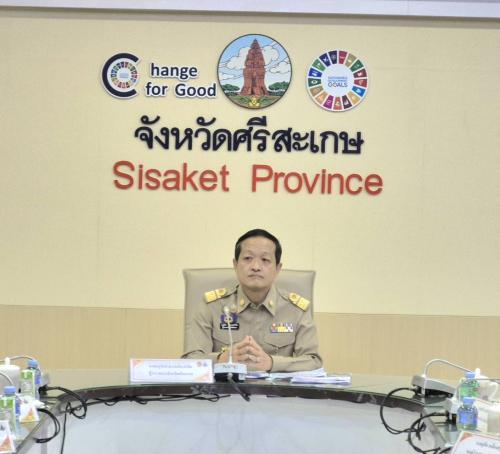 ในการนี้ จังหวัดศรีสะเกษ นำโดย นายอนุรัตน์ ธรรมประจำจิต ผู้ว่าราชการจังหวัดศรีสะเกษ พร้อมด้วยรองผู้ว่าราชการจังหวัดศรีสะเกษ นางทรัพย์สิน โพธิ์ขาว พัฒนาการจังหวัดศรีสะเกษ หัวหน้าส่วนราชการระดับจังหวัด นายอำเภอ และหน่วยงานที่เกี่ยวข้อง เข้าร่วมประชุมและรับฟังนโยบายอย่างพร้อมเพรียง ณ ห้องประชุมสระกำแพงใหญ่ ชั้น 4 ศาลากลางจังหวัดศรีสะเกษ