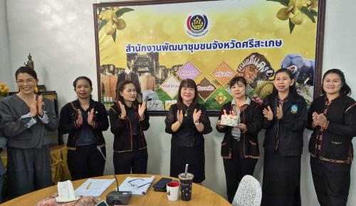 ก่อนวาระการประชุม กิจกรรมสร้างขวัญกำลังใจ รวมถึงเสริมสร้างความอบอุ่นให้กับบุคลากรในองค์กร มีการแสดงความยินดีในโอกาสวันคล้ายวันเกิด นางทรัพย์สิน โพธิ์ขาว พัฒนาการจังหวัดศรีสะเกษ