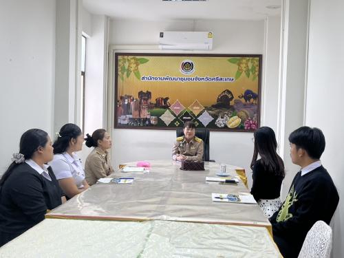สำนักงานพัฒนาชุมชนจังหวัดศรีสะเกษ ร่วมต้อนรับอาจารย์นิเทศจากมหาวิทยาลัยราชภัฏศรีสะเกษ ในการนิเทศติดตามนักศึกษาฝึกประสบการณ์วิชาชีพ สาขารัฐประศาสนศาสตร์