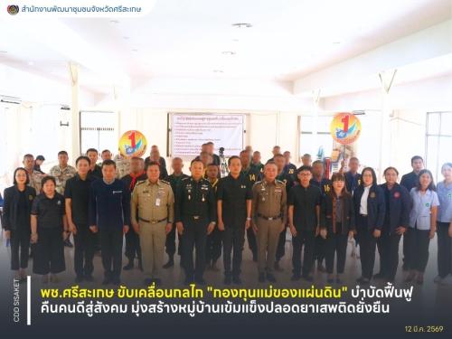 พช.ศรีสะเกษ ขับเคลื่อนกลไก "กองทุนแม่ของแผ่นดิน" บำบัดฟื้นฟูคืนคนดีสู่สังคม มุ่งสร้างหมู่บ้านเข้มแข็งปลอดยาเสพติดยั่งยืน