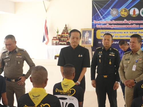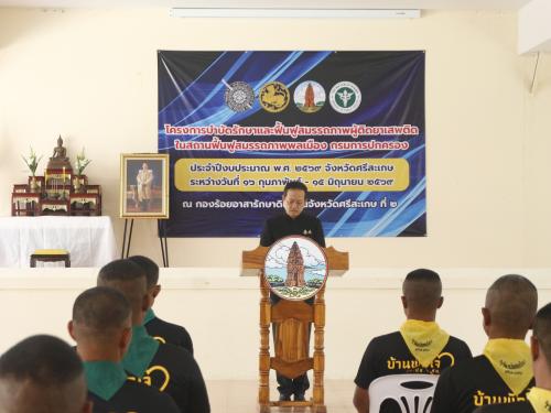 วันที่ 12 มีนาคม 2569 เวลา 10.30 น. ณ ห้องประชุมกองร้อยอาสารักษาดินแดนจังหวัดศรีสะเกษที่ 2 นายอนุรัตน์ ธรรมประจำจิต ผู้ว่าราชการจังหวัดศรีสะเกษ เป็นประธานในพิธีเปิดโครงการบำบัดรักษาและฟื้นฟูสมรรถภาพผู้ติดยาเสพติด ประจำปีงบประมาณ พ.ศ. 2569 โดยมีนางทรัพย์สิน โพธิ์ขาว พัฒนาการจังหวัดศรีสะเกษ พร้อมด้วยหัวหน้าส่วนราชการระดับจังหวัดเข้าร่วมในพิธี เพื่อร่วมกันบูรณาการแนวทางบำบัดรักษาและฟื้นฟูสมรรถภาพทางร่างกายและจิตใจให้แก่กลุ่มเป้าหมาย มุ่งเน้นการปรับเปลี่ยนพฤติกรรมและเตรียมความพร้อมในการกลับไปใช้ชีวิตในสังคมได้อย่างปกติสุขและมีคุณภาพ