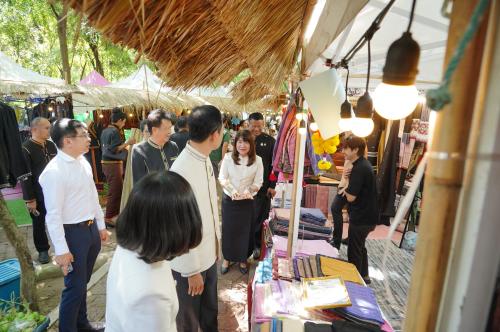 ในการนี้ นายอนุรัตน์ ธรรมประจำจิต ผู้ว่าราชการจังหวัดศรีสะเกษ พร้อมด้วย นางโสภา ธรรมประจำจิต นายกเหล่ากาชาดจังหวัดศรีสะเกษ หัวหน้าส่วนราชการจังหวัด พัฒนาการจังหวัดศรีสะเกษ นายอำเภอเมืองศรีสะเกษ หน่วยงานภาครัฐ ภาคเอกชน ตลอดจนผู้ประกอบการ เกษตรกร และประชาชน ได้ร่วมเยี่ยมชมตลาดโบราณ พร้อมให้กำลังใจผู้ผลิตและผู้ประกอบการ OTOP ที่นำสินค้าภูมิปัญญาท้องถิ่นมาจัดแสดงและจำหน่ายภายในงาน