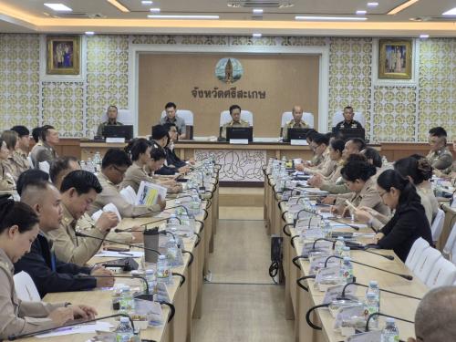 นายอนุรัตน์ ธรรมประจำจิต ผู้ว่าราชการจังหวัดศรีสะเกษ เป็นประธานการประชุม พร้อมด้วย นายสุริยา บุตรจินดา รองผู้ว่าราชการจังหวัด หัวหน้าส่วนราชการ และหน่วยงานที่เกี่ยวข้อง อาทิ สำนักงานสาธารณสุขจังหวัด ตำรวจภูธรจังหวัด สำนักงานพัฒนาสังคมและความมั่นคงของมนุษย์จังหวัด สำนักงานศึกษาธิการจังหวัด และหน่วยงานด้านความมั่นคง เข้าร่วมประชุมอย่างพร้อมเพรียง