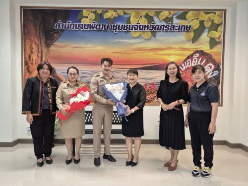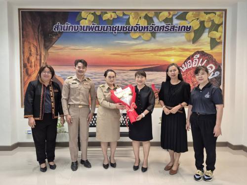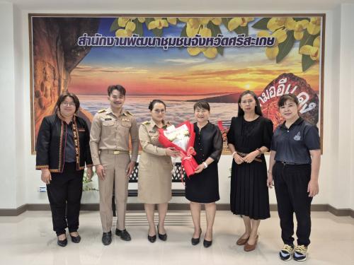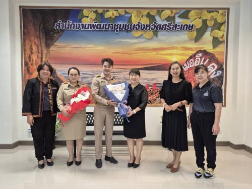 นางทรัพย์สิน โพธิ์ขาว พัฒนาการจังหวัดศรีสะเกษ พร้อมด้วย นางสาวจารุวรรณ คล่องตา ผู้อำนวยการกลุ่มงานยุทธศาสตร์การพัฒนาชุมชน นางสาวธนพร ขจิตเวทย์ ผู้อำนวยการกลุ่มงานสารสนเทศการพัฒนาชุมชน และเจ้าหน้าที่พัฒนาชุมชนจังหวัดให้การต้อนรับ ข้าราชการพัฒนาชุมชนที่ย้ายมาปฏิบัติหน้าที่ใหม่ ที่สำนักงานพัฒนาชุมชนจังหวัดศรีสะเกษ จำนวน 2 ราย ได้แก่ นางมาธวรรรย์ ไตรพิพัฒน์ นักวิชาการพัฒนาชุมชนปฏิบัติการ และนายอนุชิต วิลานันท์ นักวิชาการพัฒนาชุมชนปฏิบัติการ ซึ่งได้เข้าพบและรายงานตัวอย่างเป็นทางการ เพื่อแสดงความพร้อมในการปฏิบัติงาน และรับทราบแนวทาง ข้อสั่งการ รวมทั้งภารกิจสำคัญของสำนักงานพัฒนาชุมชนจังหวัด
