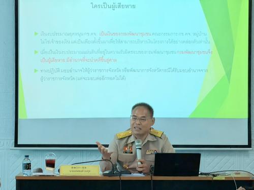 นอกจากนี้ ยังได้รับความร่วมมือจากวิทยากรด้านกฎหมายและบัญชี ร่วมถ่ายทอดองค์ความรู้เกี่ยวกับการป้องกันและลดความเสี่ยงในการบริหารจัดการกองทุนชุมชน ครอบคลุมเนื้อหาสำคัญ อาทิ ความรู้เกี่ยวกับสัญญากู้ยืม หนังสือรับสภาพหนี้ หนังสือรับสภาพความผิด การดำเนินคดีทางแพ่งและอาญา ตลอดจนหลักการจัดทำและตรวจสอบบัญชีเบื้องต้น เพื่อเสริมสร้างความเข้าใจและเพิ่มประสิทธิภาพในการปฏิบัติงานของเจ้าหน้าที่ในระดับพื้นที่
