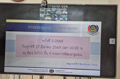 นายไพโรจน์ โสภาพร รองอธิบดีกรมการพัฒนาชุมชน เป็นประธานการประชุม โดยมี คณะผู้บริหาร และเจ้าหน้าที่ที่เกี่ยวข้อง เข้าร่วมประชุมกรมการพัฒนาชุมชน ครั้งที่ 3/2569 ทั้งในรูปแบบ Onsite และ Online ผ่านระบบ Video Conference (VCS) ณ ห้องประชุม 5001 ชั้น 5 กรมการพัฒนาชุมชน