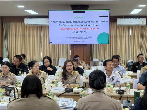 นายอนุรัตน์ ธรรมประจำจิต ผู้ว่าราชการจังหวัดศรีสะเกษ เป็นประธานการประชุมคณะทำงานขับเคลื่อนโปรแกรมการยกระดับคุณภาพชีวิตด้วยวิทยาศาสตร์ เทคโนโลยีและนวัตกรรม ในพื้นที่ทุ่งกุลาร้องไห้ จังหวัดศรีสะเกษ ครั้งที่ 1/2569 โดยมีผู้อำนวยการสถาบันวิจัย สวทช. หน่วยงานด้านเกษตรและสาธารณสุขจังหวัด หัวหน้าส่วนราชการ และคณะทำงานที่เกี่ยวข้อง เข้าร่วมประชุมอย่างพร้อมเพรียง